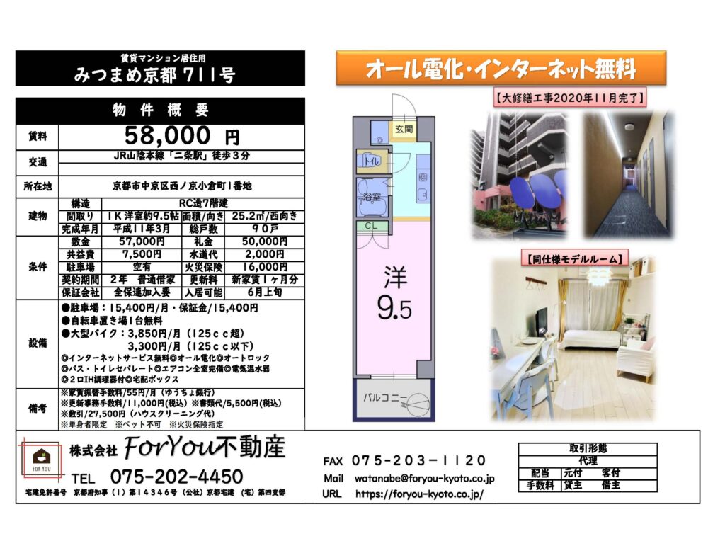 711号 1K洋室9.5帖 家賃58,000円